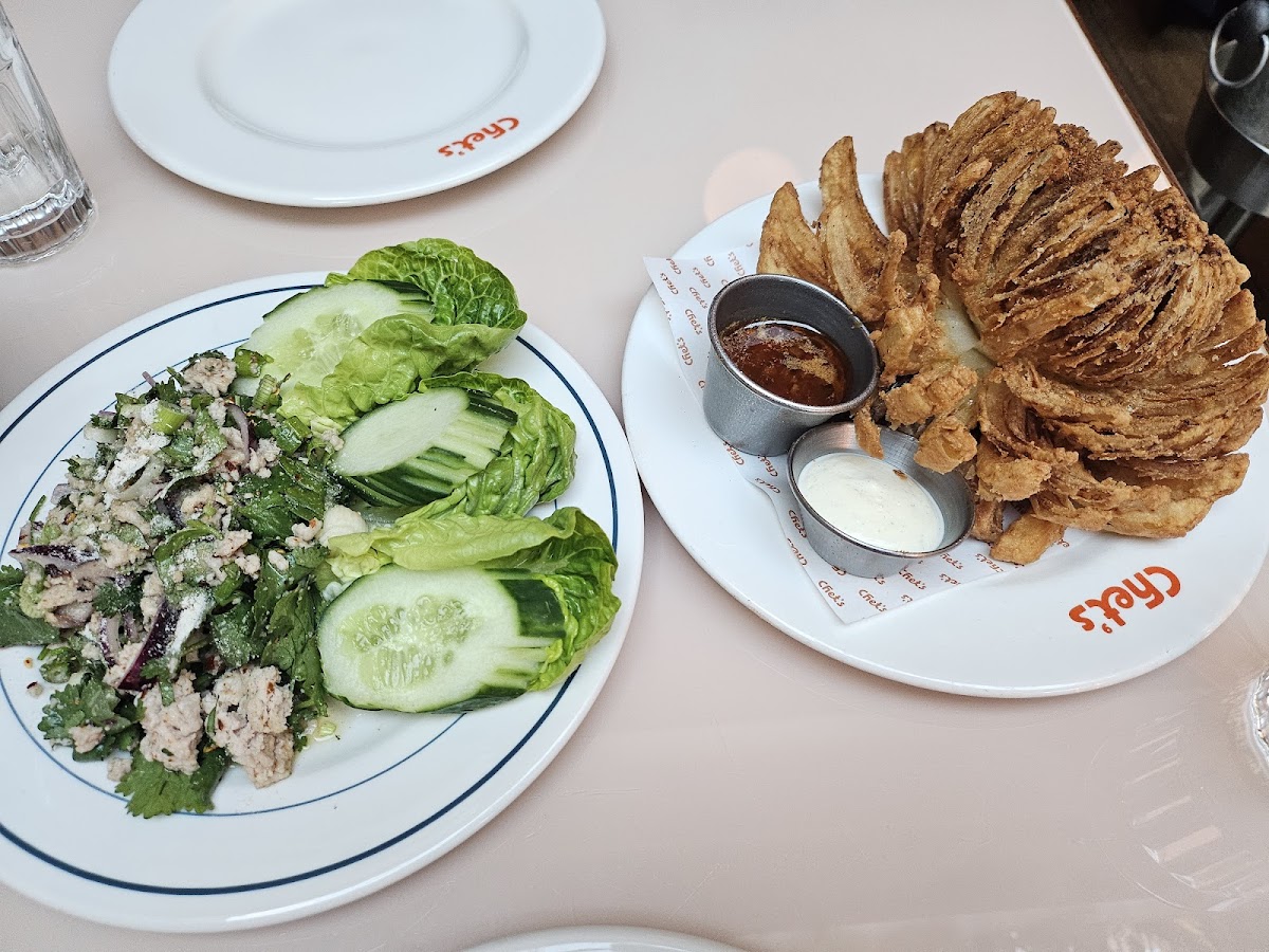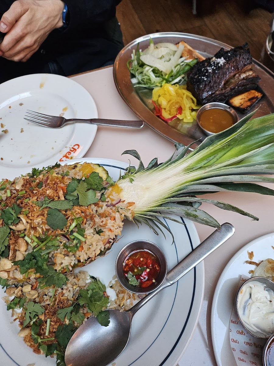 One of the standout features of Chet's is its impressive range of popular dishes, including the mouthwatering Pineapple Fried Rice, tangy Tingling Onion, refreshing Papaya Salad, and the crispy Prawn Toast. If you're craving something a bit heartier, you can’t go wrong with their Sticky Wings, Pork Ribs, Smash Burger and Fries, or the Chicken Katsu. For something a bit more unique, their Karaage, Fried Chicken Khao Soi, and Roti Waffle Chicken are crowd favorites. Don't forget to save room for dessert - the Apple Pie and Babka French Toast are perfect sweet endings to any meal.